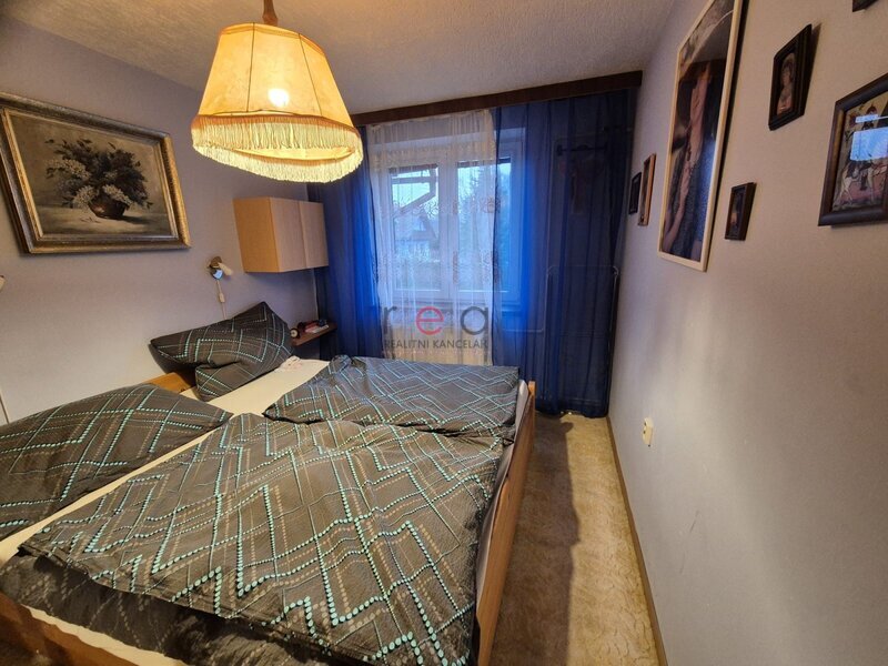 V 1. patře má bytovou jednotku o velikosti 3+1 s koupelnou a WC,